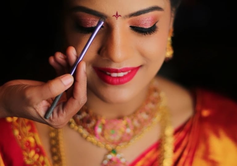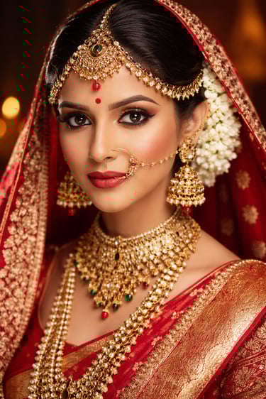 Elegant bridal makeup designed to enhance your natural beauty with flawless HD finish, traditional charm and long-lasting perfection for your wedding day.
